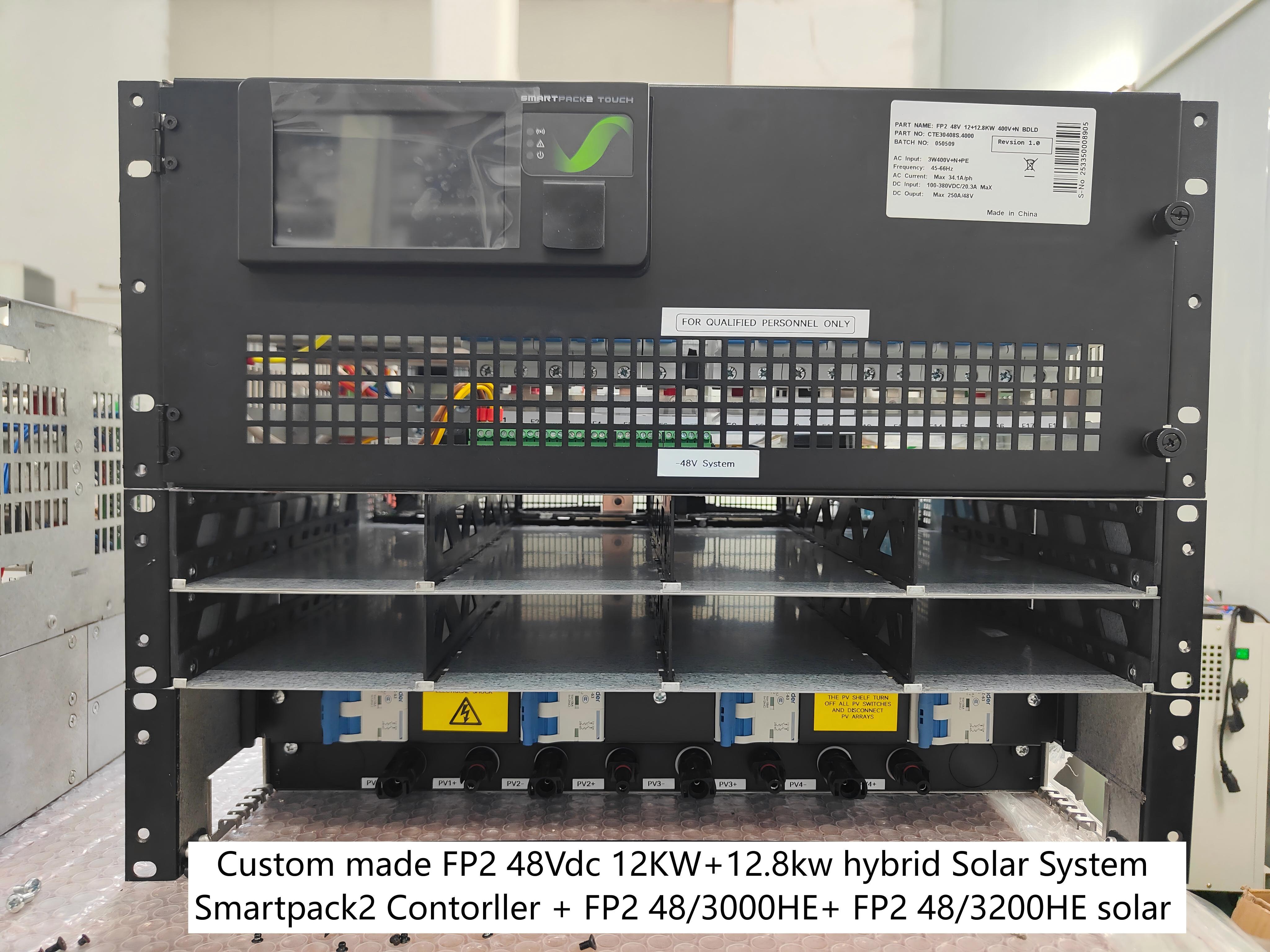Hệ thống năng lượng mặt trời lai FP2 48Vdc 12+12.8KW 400V+N BD LD 3 pha 230V Smartpack2 Controller Flatpack2 48/3200HE solar